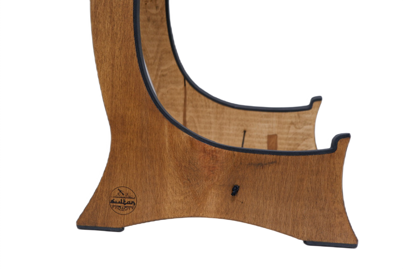 Detaylara büyük özen gösterilerek üretilen bu olağanüstü ud standı, enstrümanınızın hassas verniğini korumak için özel olarak tasarlanmış dolgulu kenarlara sahiptir. Çirkin çiziklere ve istenmeyen hasarlara elveda deyin! Standımızla udunuz, kayma veya kazara düşme riski olmadan yerinde kalmasını garanti eden lüks bir üst kayışla güvenli bir şekilde sarılır.