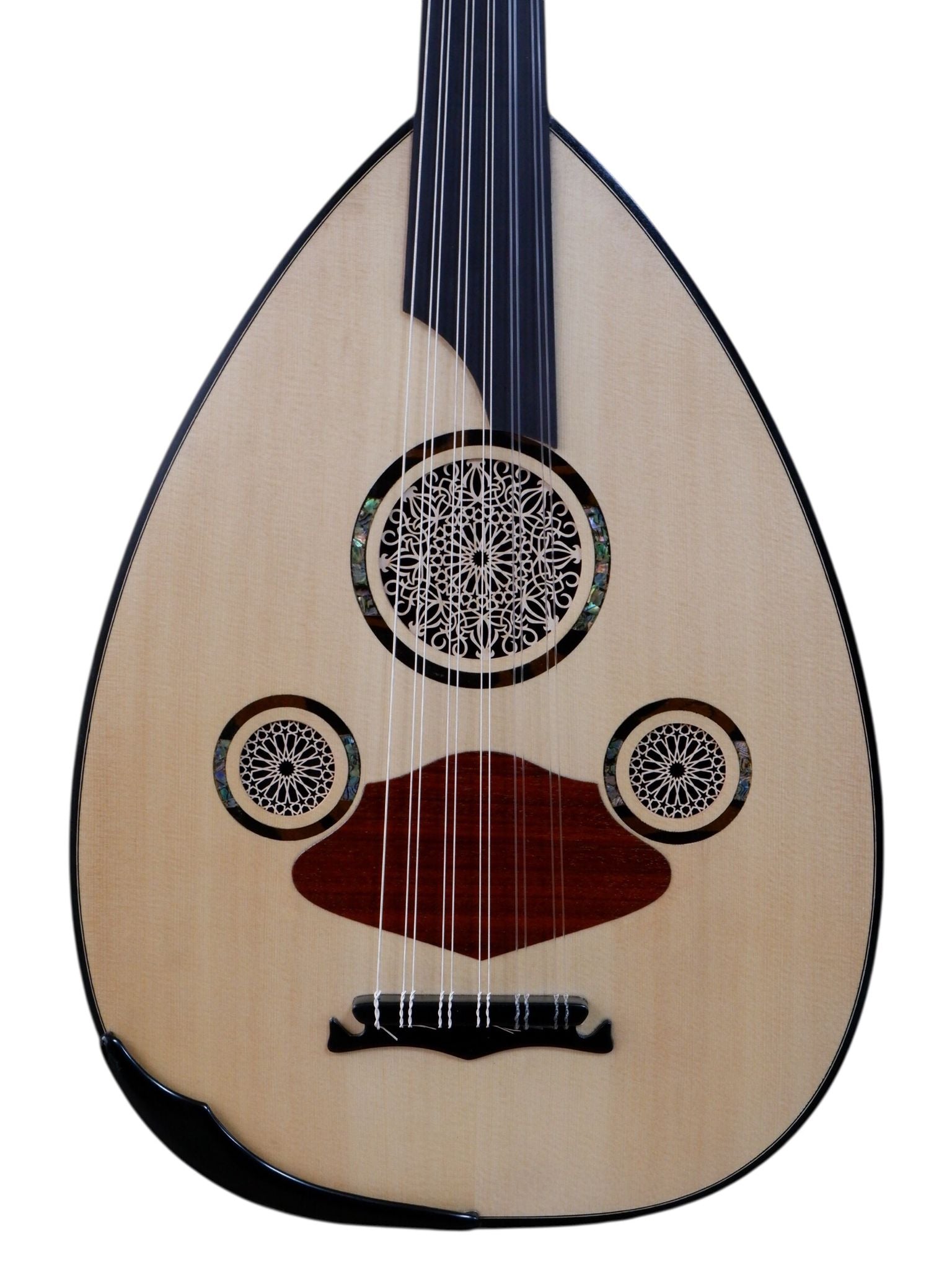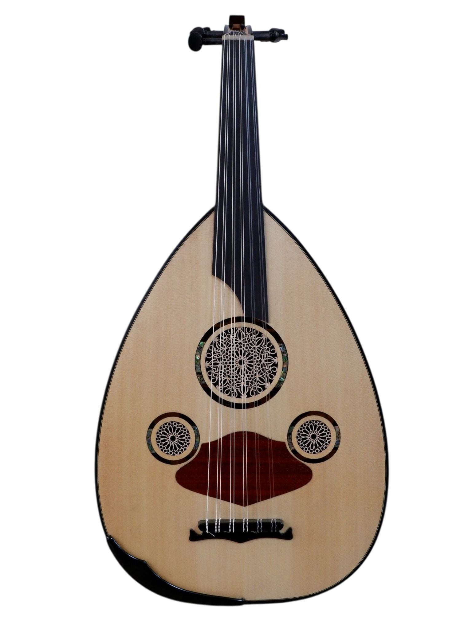 Burgular: Abanoz burgular, stabil akort tutuşu ve geleneksel ud çalımına uygun ergonomi sunar.
