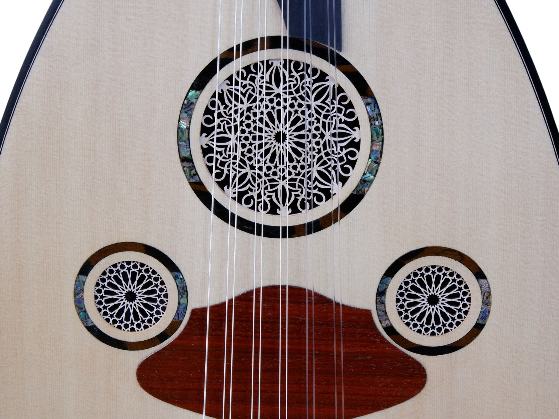 Rozetler: El işçiliği sedef kakma rozalar, udun estetiğini geleneksel sanatla buluşturur.